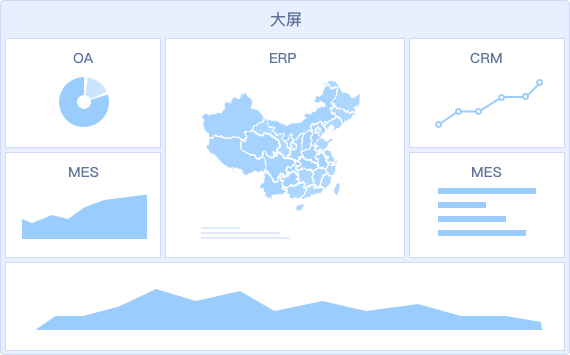 • 同一個(gè)大屏看板可以輕松整合ERP/OA/MES等多業(yè)務(wù)系統(tǒng)的數(shù)據(jù),打破信息孤島,進(jìn)行綜合展示分析,讓決策更清晰